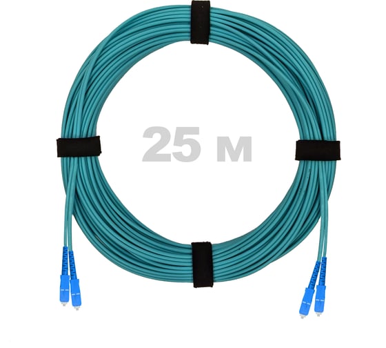 Характеристики: Длина – 25 метров Диаметр – 3 мм Тип кабеля – Многомодовый Duplex Тип волокна – MM 50/125 OM3 (Multimode) Назначение – Внутренний Материалы оболочки – LSZH Коннекторы – 2SC/UPC-2SC/UPC Температура эксплуатации – от -20 до +75 C * Цвет – бирюзовый