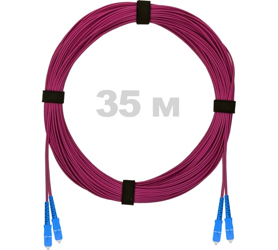 Характеристики: Длина – 35 метров Диаметр – 2 мм Тип кабеля – Многомодовый Duplex Тип волокна – MM 50/125 OM4 (Multimode) Назначение – Внутренний Материалы оболочки – LSZH Коннекторы – 2SC/UPC-2SC/UPC Температура эксплуатации – от -20 до +75 C * Цвет – розовый