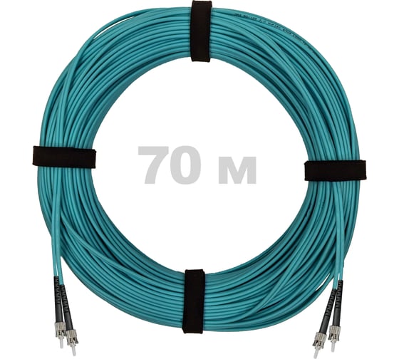 Характеристики: Длина – 70 метров Диаметр – 3 мм Тип кабеля – Многомодовый Duplex Тип волокна – MM 50/125 OM3 (Multimode) Назначение – Внутренний Материалы оболочки – LSZH Коннекторы – 2ST/PC-2ST/PC Температура эксплуатации – от -20 до +75 C * Цвет – бирюзовый