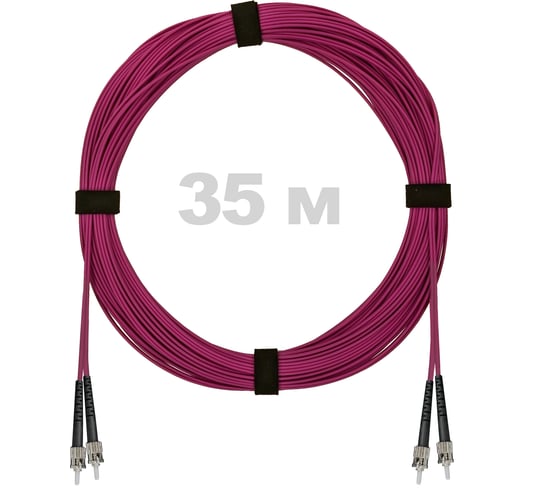 Характеристики: Длина – 35 метров Диаметр – 3 мм Тип кабеля – Многомодовый Duplex Тип волокна – MM 50/125 OM4 (Multimode) Назначение – Внутренний Материалы оболочки – LSZH Коннекторы – 2ST/PC-2ST/PC Температура эксплуатации – от -20 до +75 C * Цвет – розовый