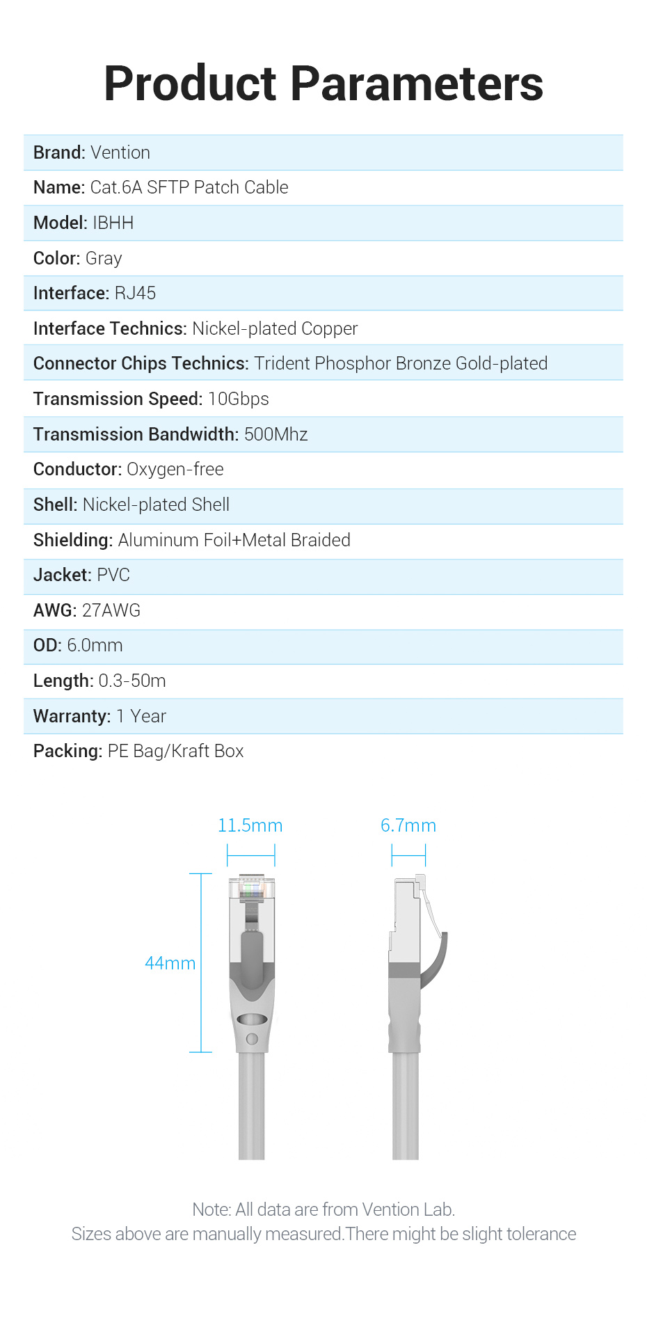Патч-корд прямой VENTION SFTP cat.6A, RJ45, 1м, серый IBHHF