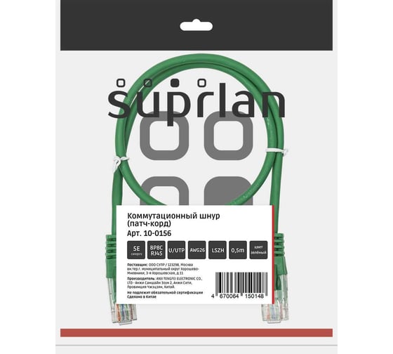 Вопросы и ответы о патч-корде SUPRLAN U/UTP Cat.5e 4x2 26AWG /7x0.16mm/ Cu LSZH зеленый 0,5м 10-0156