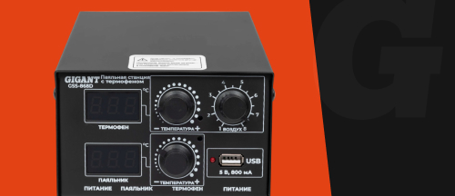 Паяльная станция Gigant с термофеном 500Вт GSS-868D используется для распайки и пайки широкого спектра компонентов. Устройство отлично подходит для термоусадки, сушки, удаления краски, предварительного нагрева, пайки клеем и многого другого. Управление температурой - цифровое, потоком воздуха - аналоговое.