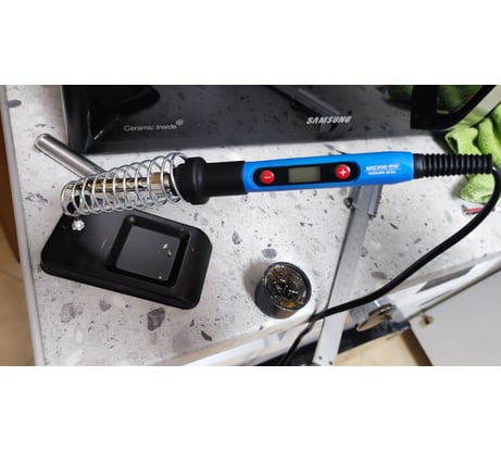 После 3 дней использования расплавилась ручка. Синяя резьба просто поплыла и нагреватель отвалился вместе с жалом. Пришлось завинчивать саморезы в резьбу, чтобы хоть как-то закончить начатое дело. Этого надолго не хватило, саморезы тоже поплыли. Припой в наборе тугоплавкий, он этим паяльником не плавится, жала из набора этим припоем не облуживаются. Резак не зачищает провода, потому что они слишком тонкие для резака. В общем впечатление такое, что напихали в набор неликвиды.