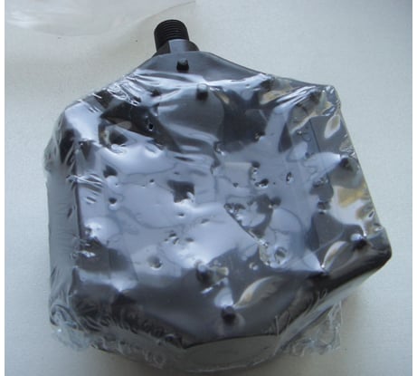Моноблок из крепкого пластика, стальная ось. Подшипник скольжения. Противоскользящая поверхность педалей с рельефным рисунком для лучшего сцепления с обувью. Нет сильно выступающих частей на педалях.