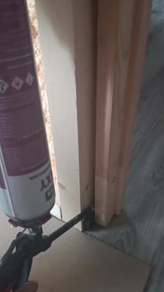 Пена плотная, мелкопористая, После отверждения дверную коробку не выдавило