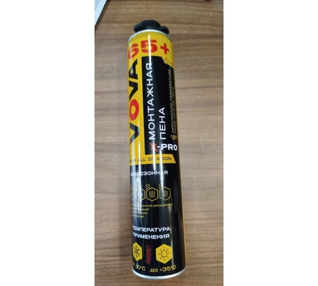 VOVA X-PRO 65+ 850 мл - Пена полиуретановая монтажная профессиональная ВСЕСЕЗОННАЯ с увеличенным выходом. Используется при температуре от 10 С до +35 С. Подходит для выполнения широкого спектра строительных и ремонтных задач как снаружи, так и внутри помещения. Обеспечивает высокую адгезию к большинству материалов, превосходную термо и звукоизоляцию.