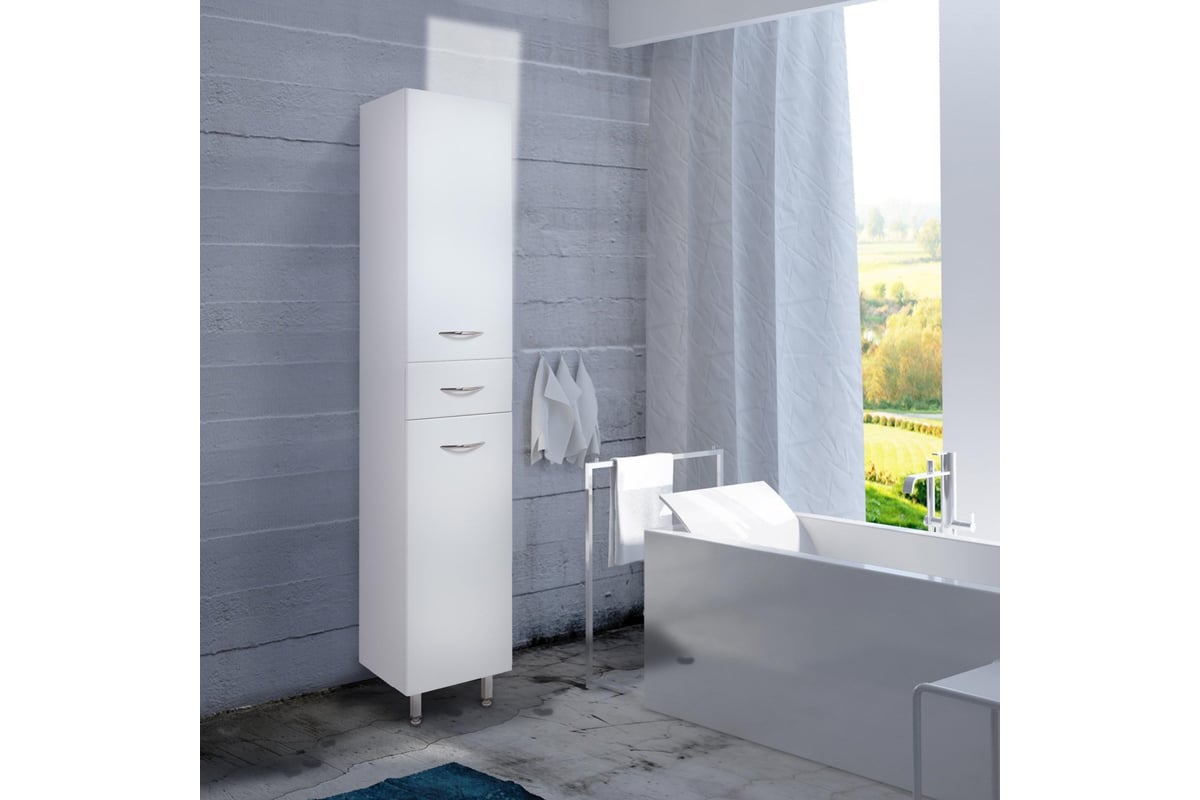 Напольный пенал для ванной комнаты Onika МОДЕРН 26, благодаря простому минималистичному дизайну и белому глянцевому фасаду, подойдет под любой интерьер ванной комнаты.