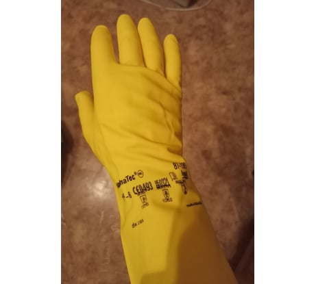 Отличные перчатки, крепкие и химически стойкие, соответствуют заявленному размеру, хорошо сидят на руке, ничего лишнего нет. Подойдут как для хозяйственных дел, так и при работе с химическими веществами. Но сделаны из натуральной резины, а не нитрила (непонятно, что они делают в разделе нитриловые перчатки)