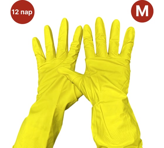 Перчатки хозяйственные SAMGRUPP резиновые с хлопковым напылением, размер М, 12 пар SAMC-074200009-12