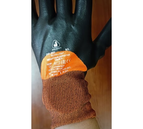 Защитное нитриловое покрытие на 3/4 поверхности обеспечивает защиту пальцев от контакта с агрессивной средой,