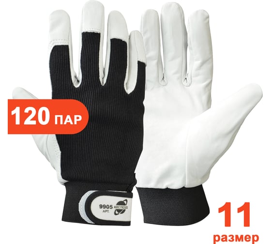 Перчатки комбинированные ARCTICUS натуральная кожа/хб, застежка-липучка р.11, 120 пар 9905-11120