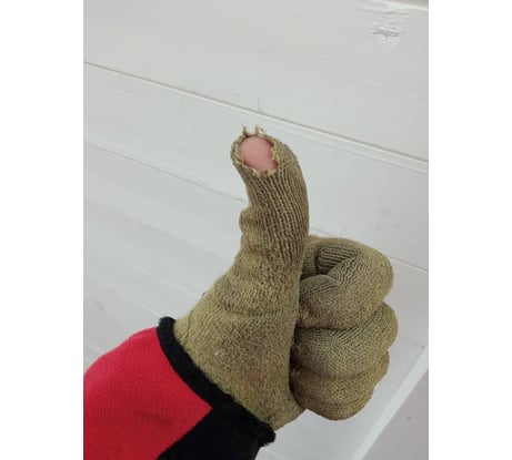 Плотная вязка, неплохо тянутся (подошли и на мою руку размера 10 и матушке на руку размера 8). Разбирать хлам в сарае, работать орбитальной шлифмашинкой, пилить в них удобно.