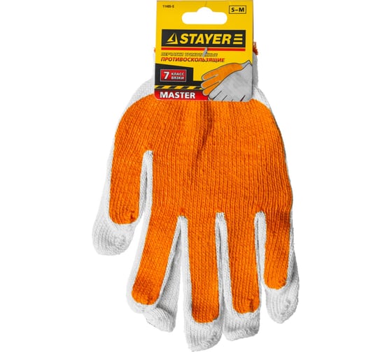 Сопутствующие товары для перчаток STAYER МASTER обливная ладонь из ПВХ, х/б, 7 класс, S-M