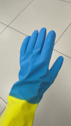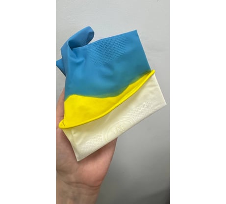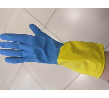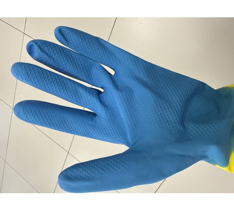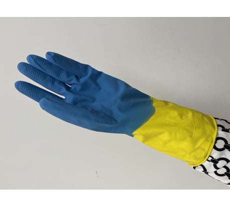 Перчатки многоразовые латексные LAIMA БИКОЛОР сине-желтые х/б напыление рM средний, 55г, 700542