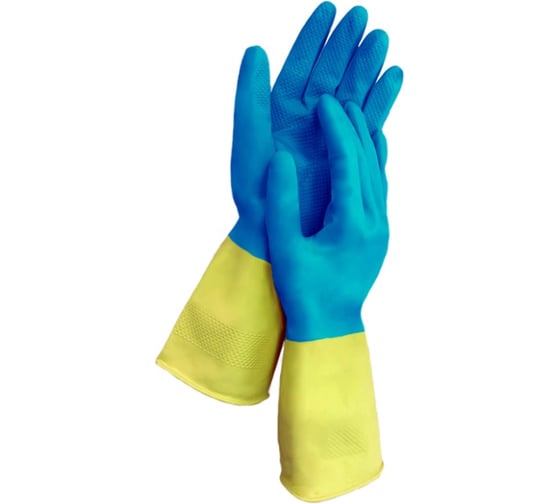 Перчатки многоразовые латексные LAIMA БИКОЛОР сине-желтые х/б напыление рS малый, 52г, 700541