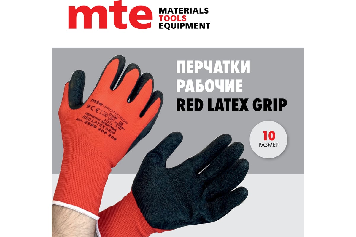Перчатки рабочие MTE RED LATX GRIP красно-черные, р.10 2899408210