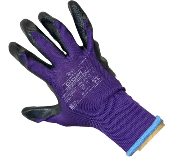 Перчатки GM-1005N-10 Oleum изготовлены из высококачественного фиолетового нейлона, который обеспечивает отличную вентиляцию и не оставляет ворсинок на поверхности. Черный нитрил, покрывающий поверхность, обеспечивает превосходную защиту от промасленных поверхностей и механических повреждений.