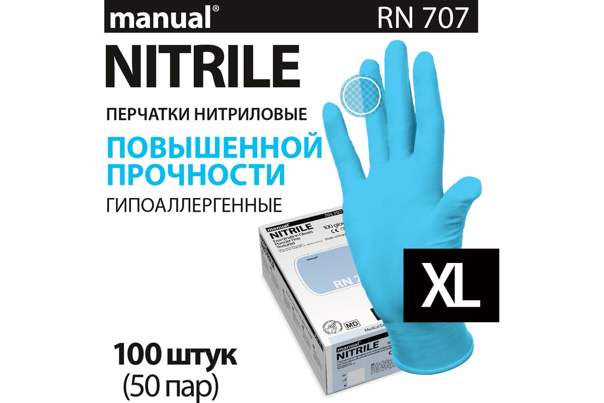 Перчатки нитриловые неопудренные MANUAL RN707 100 шт. размер ХL CT0000005212