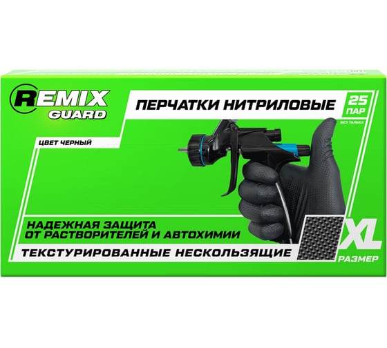 Перчатки нитриловые нескользящие REMIX GUARD цвет черный, размер XL, 25 пар/упак RG-NTB-XL