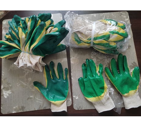 Трикотажные перчатки из смесовой пряжи с двойным покрытием из натурального латекса. Предназначены для защиты рук от общепроизводственных загрязнений и механических воздействий.