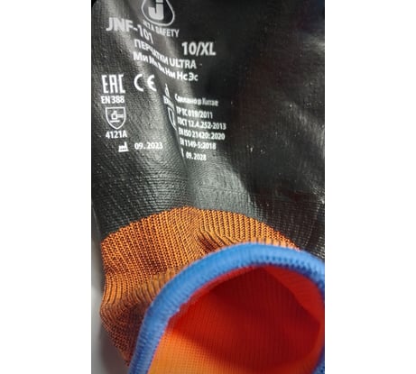 Защитные свойства: Ми, Мп, Вн, Нм, Нс, Эс. Механическая стойкость по EN388: 4121A.