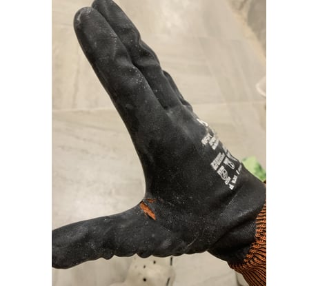 После одного дня использования резина разошлась между большим и указательным пальцем. Возможно прорезиненый слой довольно тонкий. Для меня в целом не критично, потому что брал для защиты от пыли, для работ где есть контакт с водой я бы поискал еще. Если нужны по прочней то заказывайте лучше дельту.
