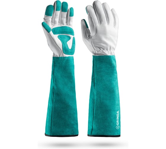 GRINDA PRO Line Rose M (8), кожаные садовые перчатки для колючих кустарников с увеличенной крагой, усиленная ладонь и кончики пальцев 11304-M из натуральной кожи для защиты рук при работе в саду.