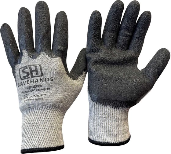 Перчатки SaveHands 103, утеплённые ХБ с рельефным латексным покрытием, 10 р. 101103