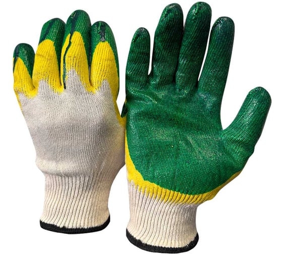 -Двойной облив: основа из плотной хлопчатобумажной ткани покрыта полимерным слоем (2‑й облив), что обеспечивает повышенную износостойкость и защиту от механических повреждений.