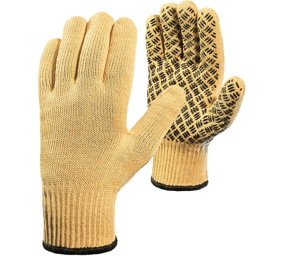 Промышленные защитные перчатки от ожогов из высокопрочной пара-арамидной нити (10 класс вязки) с хлопковым вкладышем и двойным оверлоком. Обеспечивают защиту рук от ожогов при кратковременном воздействии открытого пламени, теплового излучения и конвективного тепла до 100 °С, механических повреждений и загрязнений. Обладают отличной воздухопроницаемостью.