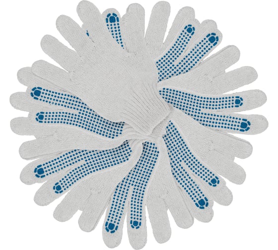 Перчатки трикотажные СИБРТЕХ х/б, 200 пар, ПВХ точка, 6 нитей, 10 класс 68207