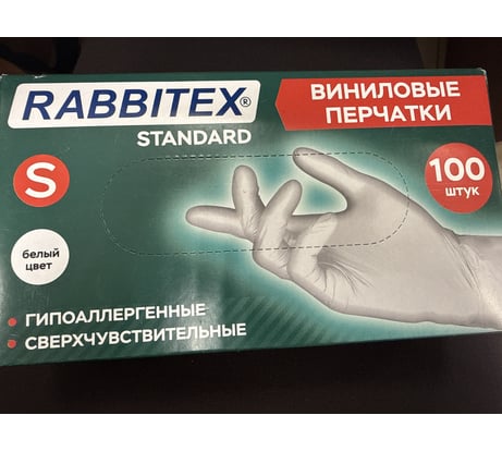 Перчатки виниловые универсальные RABBITEX 50 пар (100шт), р.S (малый), белые 702163