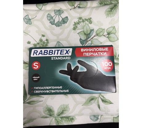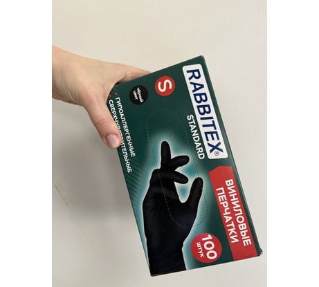 Перчатки виниловые универсальные RABBITEX 50 пар (100шт), р.S (малый), черные 702167