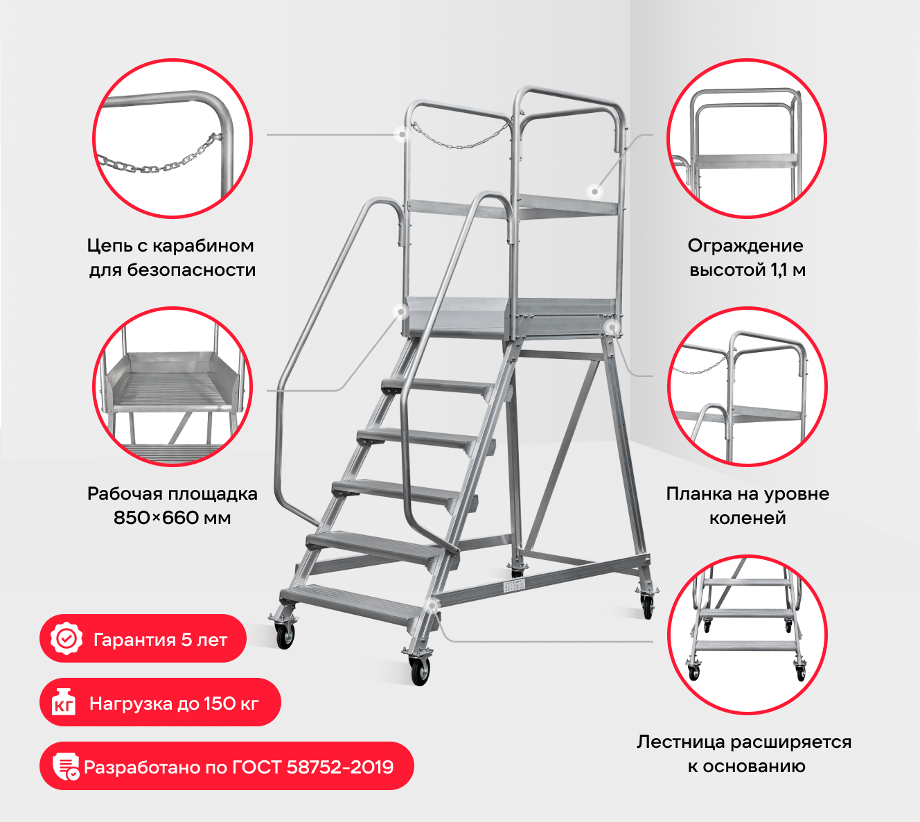 Передвижная лестница-подмости с платформой Новая Высота NV 5512 артикул 5512106
