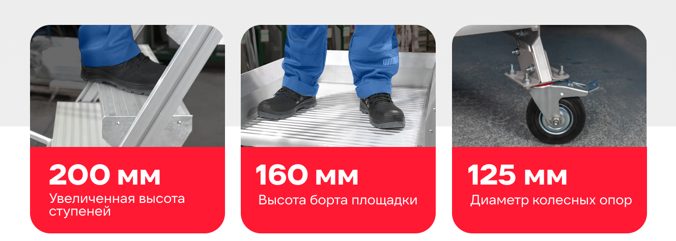 Мобильные подмости для коллективного использования, интенсивных нагрузок снаружи и внутри помещений. Обеспечивают безопасность труда и надежную опору на высоте.