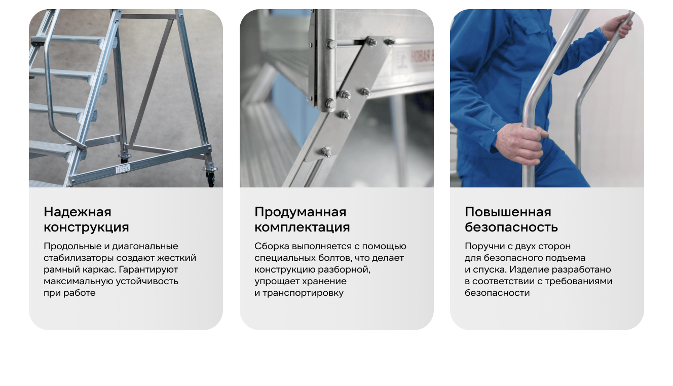 - Поручни по обеим сторонам лестницы для безопасного подъёма и спуска.