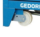 Надежность транспортировочной системы GEDORE 6621780 оснащается колесами, которые располагаются выше опоры при стационарном положении верстака. |