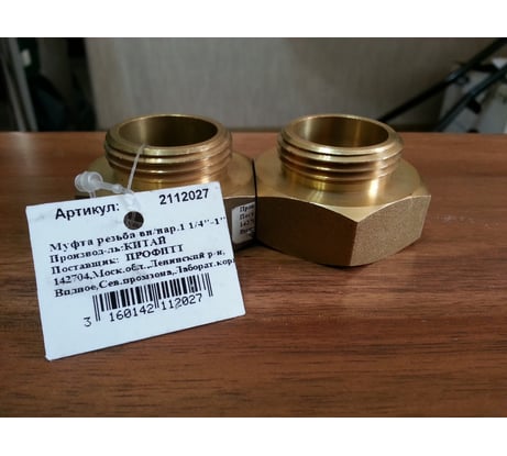 Профитт Муфта переходная внутренняя / наружная 1 1/4"-1" 2112027 - латунная муфта с внутренней и наружной резьбами разного диаметра. Используется для соединения труб разного диаметра на прямом участке водопровода. Применяется в системах водяного и парового отопления, холодного и горячего водоснабжения, в технологических трубопроводах, системах полива.