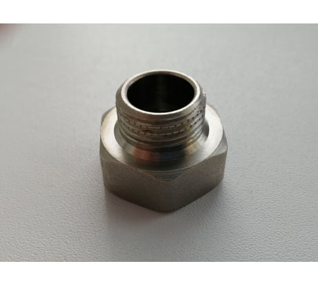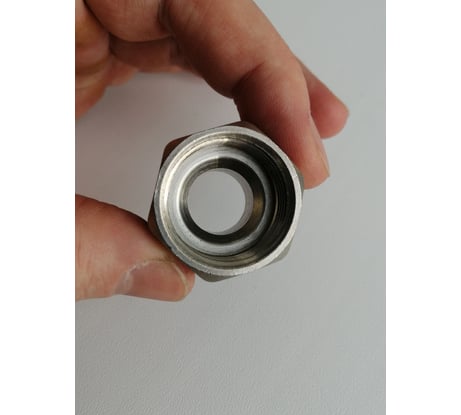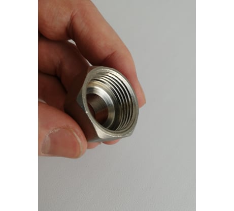 Чёткие грани, широкое место под прокладку, толстая. Имеет насечки и небольшой конус на торце.