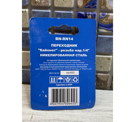 Отзывы о переходнике BN-RN14 байонете - наружной резьбе 1/4" CONCORDE 6619290