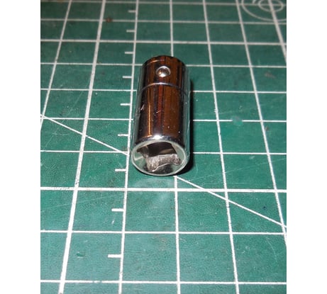 Хороший качественный переходник с подпружиненным шариком.Очень удобно работать не слетает с отвертки.