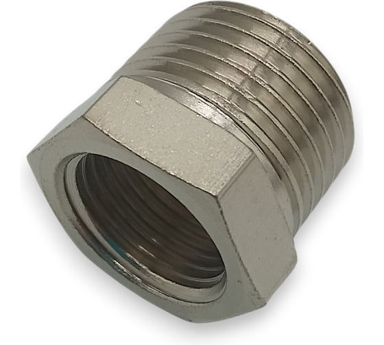 Переходной резьбовой фитинг для надёжного соединения элементов пневматической линии с разными диаметрами резьбы. Конструкция сочетает внутреннюю и наружную трубную резьбу, обеспечивая герметичный переход между магистралями.