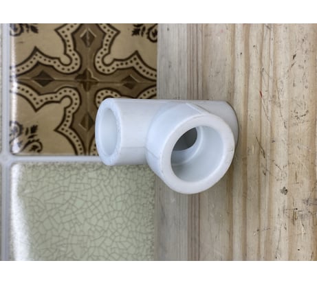 Тройник с двадцать пятой трубы на две двадцатые. Надпись на торце PP-RC PN25.
