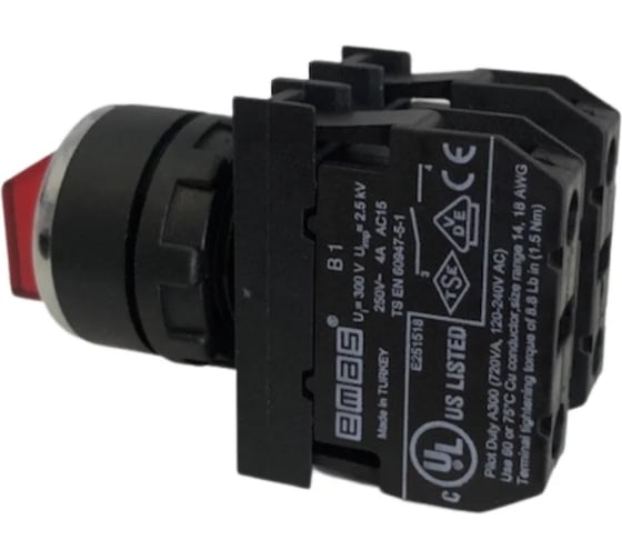 Переключатель EMAS 0-1 (1НО+1НО), с фиксацией, красный цвет, без блока подсветки, серия B (250В AC, 4А), IP50 B101SL20K