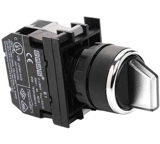 Переключатель EMAS 0-1 (1НО), без фиксации, белый цвет, с блоком подсветки B5 (белый светодиод, 12-30В AC/DC), серия B (250В AC, 4А), IP50 B150SL21B