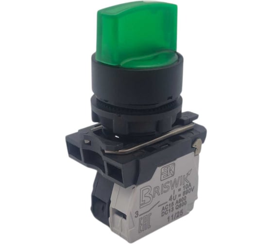 Переключатель Briswik КПЕ 1110 -РЛ 24В зеленый 1но+0нз Ручка с фикс 2-поз с Инд aB-XB-0Ai-3311