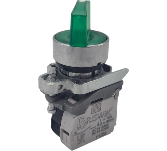 Переключатель Briswik КПЕ 1110 -РЛС 24В зеленый 1но+0нз Ручка с фикс 2-поз с Инд aD-XB-0Ai-3311