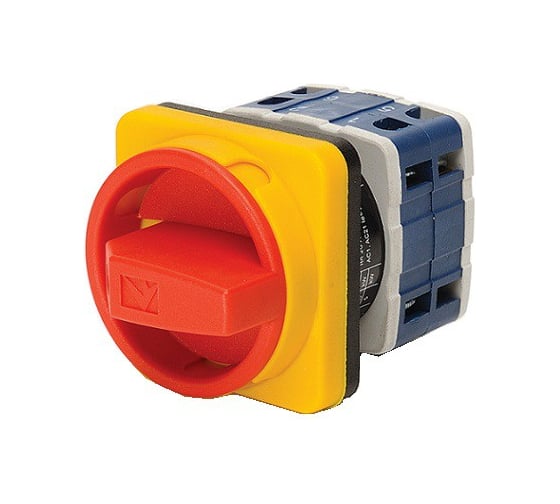 Переключатель Emas двухпозиционный аварийный 50А (0-1) 90гр, 4 полюса, рамка 64х64мм, 400В AC, IP54 PSA050AK441E