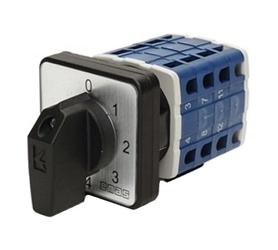 Переключатель Emas многоступенчатый 10А (0-6), 1 полюс, рамка 48х48мм, 400В AC, IP54 PSA010KS126S